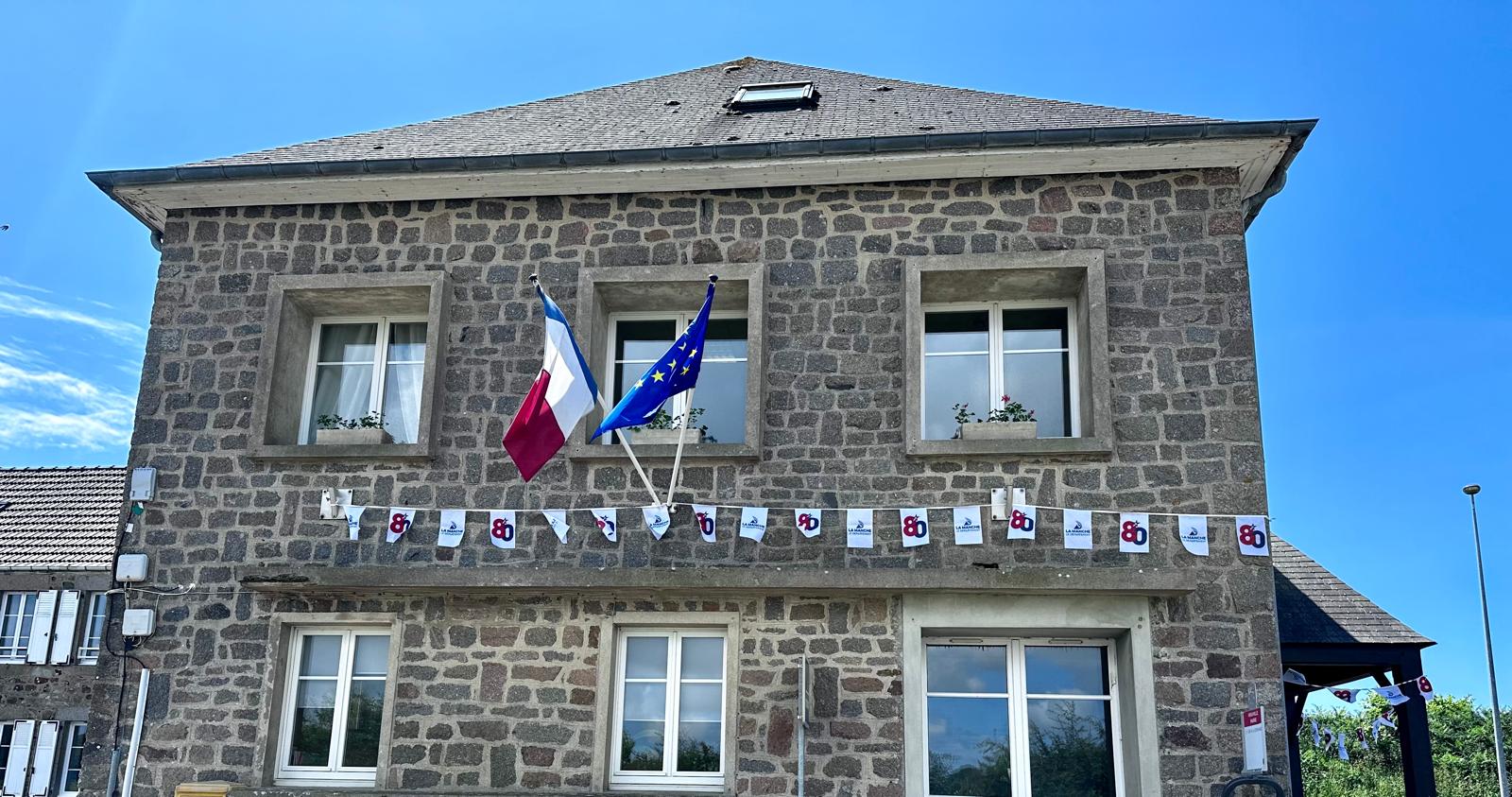 Huit décennies plus tard, nous devons encore et toujours leur dire merci. Voilà pourquoi la commune de Héauville a déployé, en signe d’hommage, ces fanions sur le fronton de sa mairie.